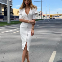 puff bodycon tie neck sleeve dresses dress plunge thing going pretty